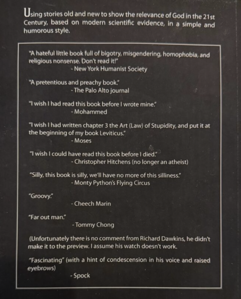 Using stories, old and new, to show the relevance of God in the 21st century, based on modern scientific evidence, in a simple and humorous style.”