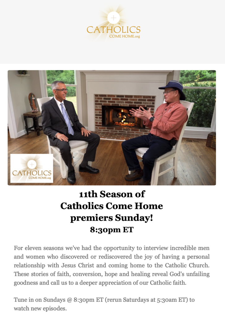 I’m Honored to be the First Guest on 11th Season of “Catholics Come Home” on EWTN TV