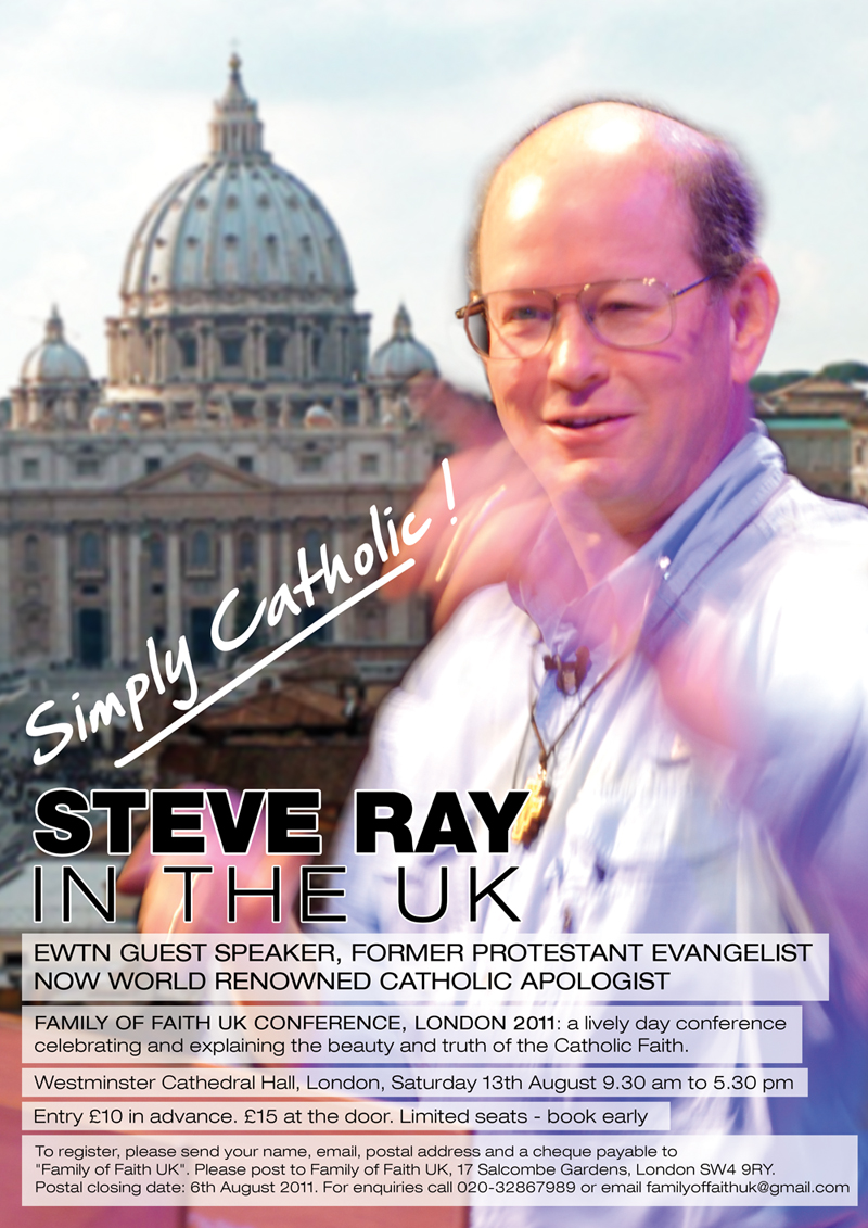 Steve Ray coming to the United Kingdom in August. First a week at Walsingham’s New Dawn Conference and then at Westminster Cathedral. Join us if you can.