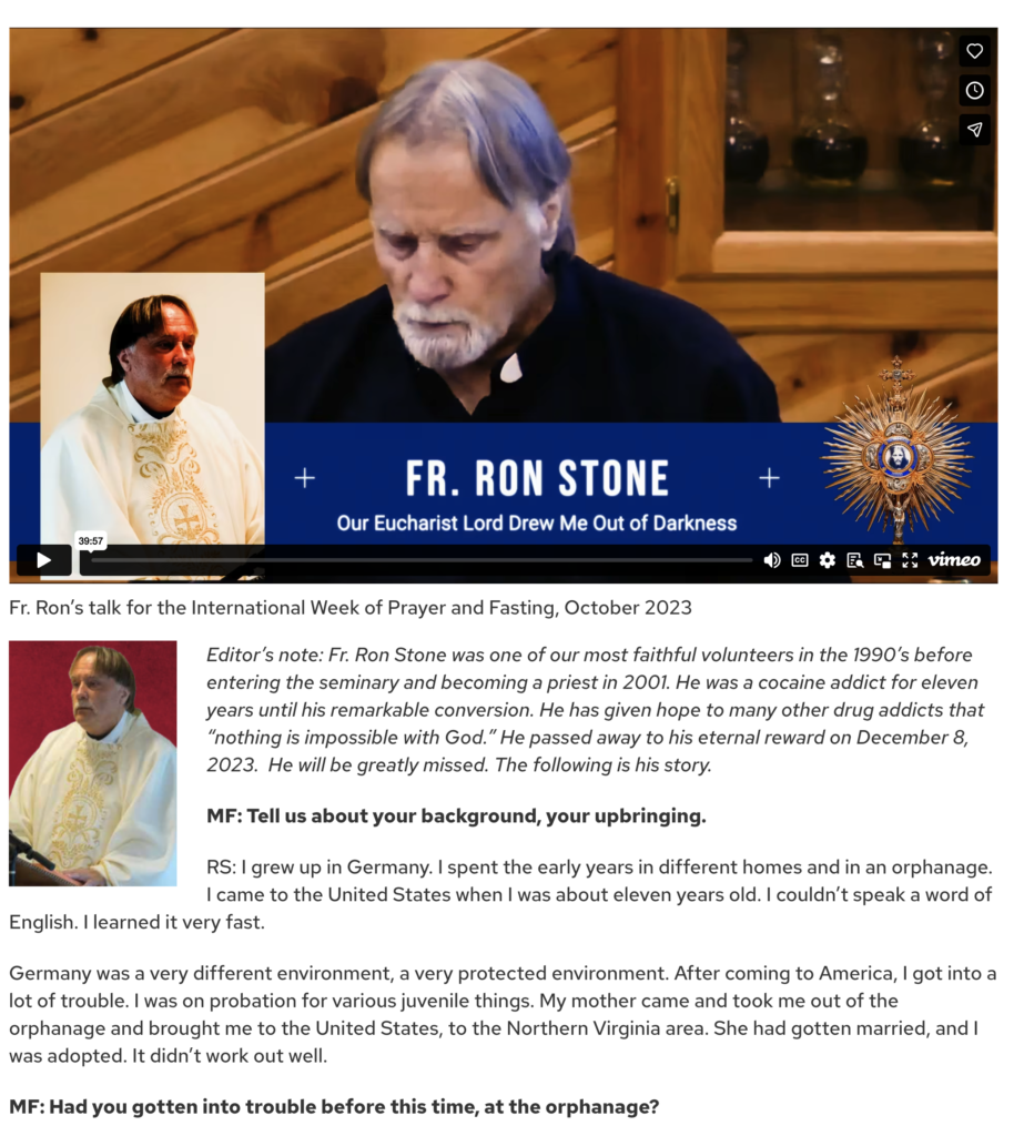 This story was shared by a good friend, Richard Pinion. Very moving account of God’s redemptive work and the redemptive work of a priest who responded to God’s call.